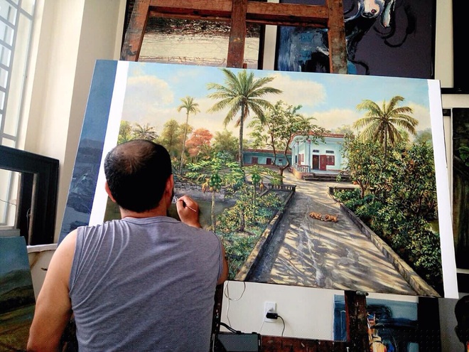 Xa quê đã lâu nhưng ký ức quê hương luôn đậm sâu trong tâm trí của họa sĩ 7X (Ảnh: Lê Anh Thanh)