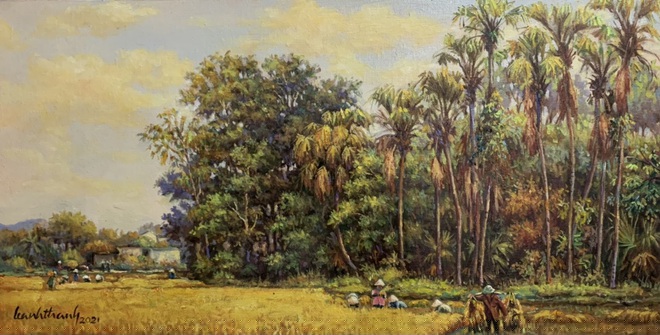 Anh cho biết trong thời gian giãn cách tại nhà, không được qua xưởng anh đành mang họa cụ về nhà vẽ. Tuy nhiên, gia đình có trẻ nhỏ, nên anh thường tranh thủ sáng tác nghệ thuật khi các con yên giấc. Với anh cảm xúc về quê hương luôn chảy trong tim để mỗi khi nhớ về nó lại dạt dào, vô tận.