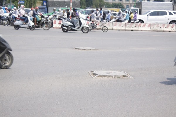 Những chiếc nắp cống cao hơn mặt đường trên đường Trường Chinh (Đống Đa, Hà Nội) xuất hiện đã lâu tiềm ẩn gây mất an toàn cho người tham gia giao thông.