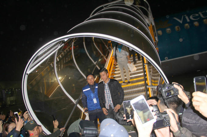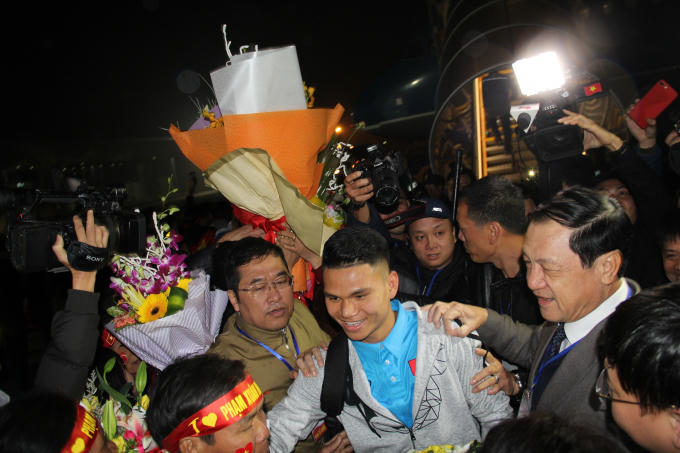 Chiều tối ngày 30/1, chuyến bay muộn đưa 5 cầu thủ U23 Việt Nam trở về Nghệ An.