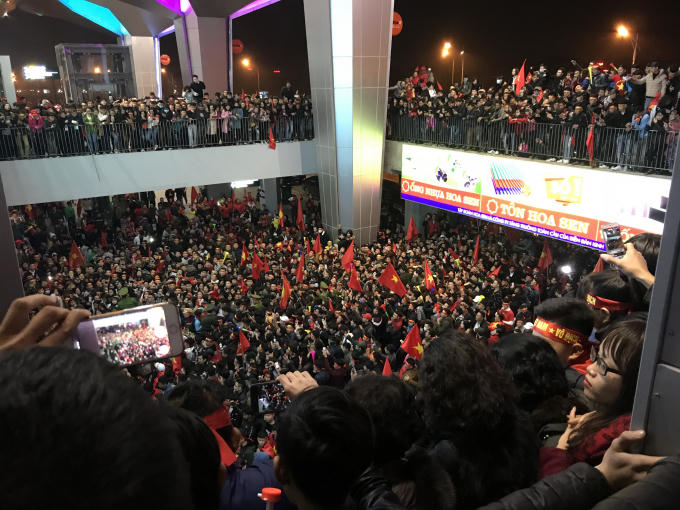 Hàng ngàn cổ động viên đã tập trung tại sân bay Vinh để chờ đón các cầu thủ.