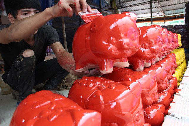 Những hình ảnh ghi nhận tại các lò gốm trên địa bàn Bình Dương đang hối hả sản xuất heo đất dịp Tết Kỷ Hợi:
