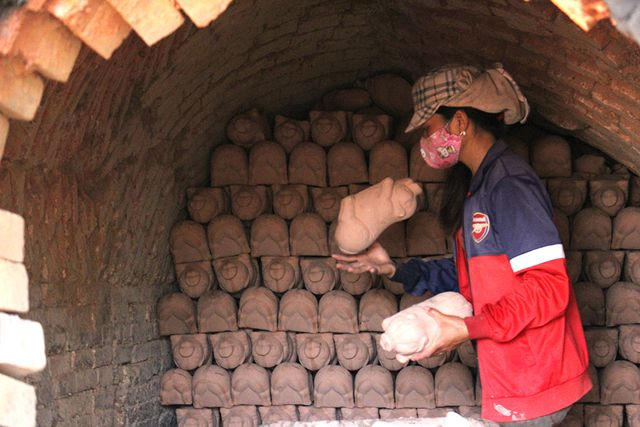 Sản phẩm từ đất độc đáo này được các lò gốm ở xã Tân Vĩnh Hiệp, thị xã Tân Uyên, Bình Dương sản xuất. Đất sét được nhào nặn đổ vào các khuôn phơi ngoài trời nắng khoảng 3 giờ, chờ đông cứng rồi đưa vào lò nung liên tục từ 10 - 12 giờ.