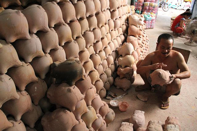 Khoảng 10 năm trở lại đây, quá trình đô thị hóa đã đẩy người làng gốm phải đi làm thuê trong các nhà máy gốm sứ mọc lên ở Bình Dương hoặc chuyển sang buôn bán. Một vài gia đình nghệ nhân còn lưu giữ nghề tổ như kế sinh nhai với sản phẩm chủ yếu chính là heo đất. Dịp cận Tết, ở đây khá nhộn nhịp, năm nay heo vàng được các lò sản xuất hàng loạt phục vụ Tết Kỷ Hợi.