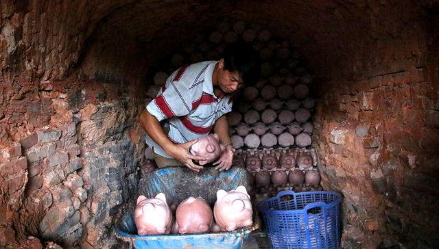 Nhiều lò nung trong các làng gốm “độc tôn” tại Bình Dương đang hối hả sản xuất heo vàng để cung ứng cho cho thị trường dịp Tết Kỷ Hợi.