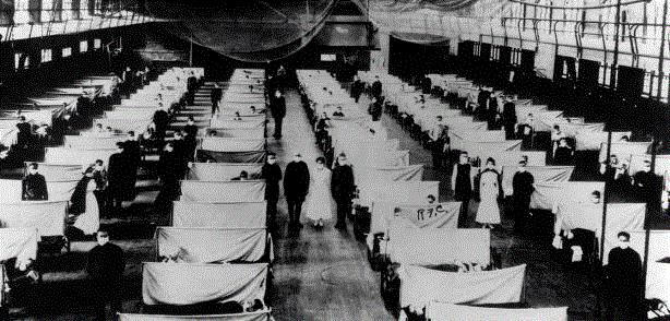 Các nhà kho được chuyển đổi làm nơi điều trị cho người nhiễm bệnh được cách ly trong trận dịch cúm Tây Ban Nha năm 1918.