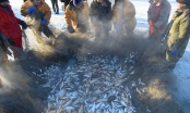 Khách du lịch hào hứng câu cá trên mặt hồ đóng băng ở Mông Cổ
