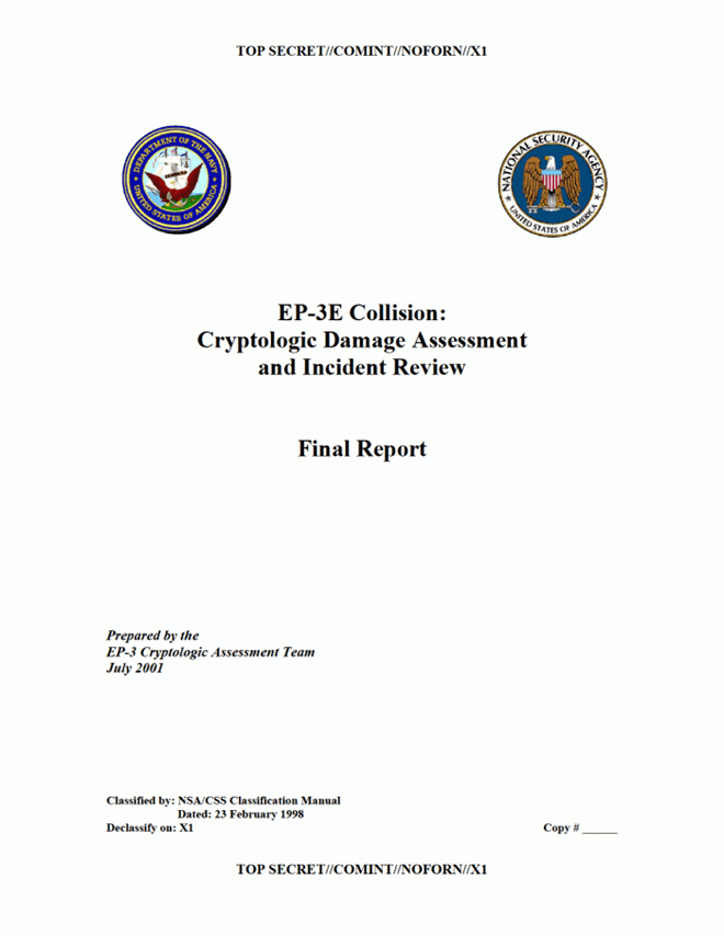 Bản báo cáo 117 trang, được hoàn tất bởi một nhóm các nhà điều tra của Hải quân Mỹ và Cơ quan An ninh Quốc gia Mỹ (NSA), được dựa trên các cuộc phỏng vấn với phi hành đoàn ngay sau khi được phía Trung Quốc phóng thích.