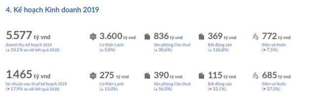Hoạt động cho thuê văn phòng sẽ tăng trưởng cao nhất trong năm 2019 do doanh nghiệp dự kiến bổ sung diện tích mới hoàn thành từ tòa nhà Etown5. Ngoài ra, công ty còn tìm kiếm vị trí mới để mở rộng diện tích văn phòng cho thuê, đồng thời các công ty liên kết sẽ phát triển thêm các dự án nhà ở, căn hộ.