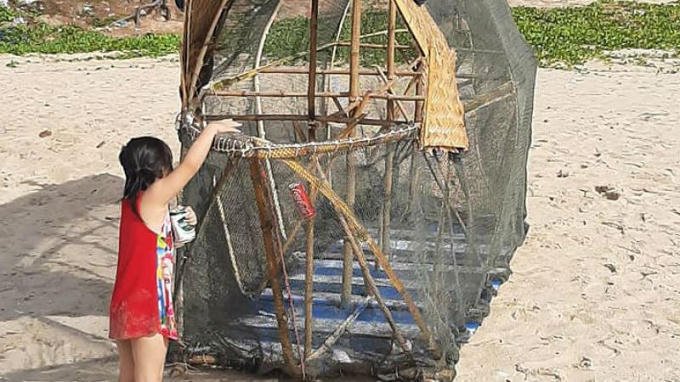 Chú cá bống ăn rác trên bãi biển Lagi - Bình Thuận, một tác phẩm của tổ chức bảo vệ môi trường và thanh niên tình nguyện địa phương.