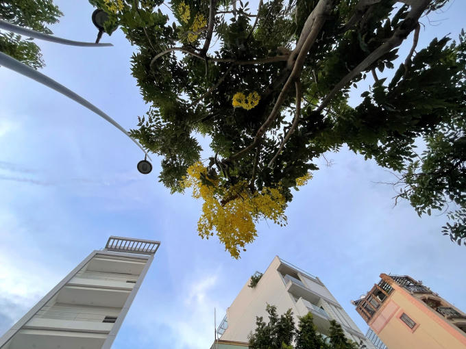 Bầu trời xanh chứa chang hy vọng được điểm tô bởi màu vàng óng của những cánh hoa, tất cả như tạo nên một chiếc áo của mùa xuân như nói lên những ước vọng của người dân Sài Gòn về một Thành phố sớm không còn dịch bệnh.