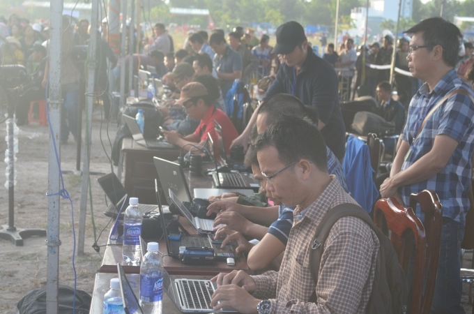| Các cơ quan báo chí có mặt đưa tin về vụ việc. |
