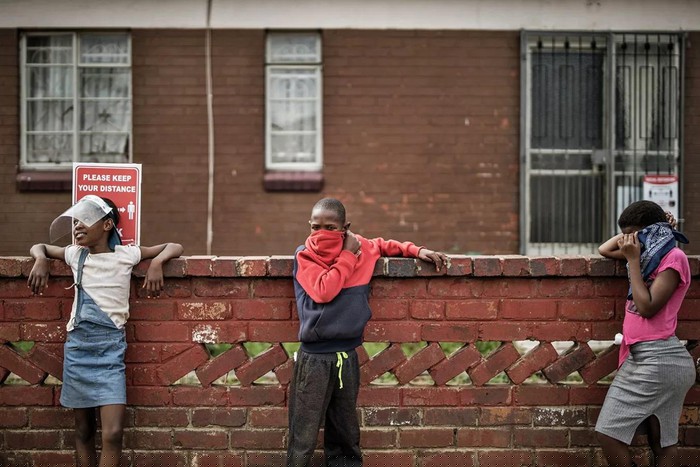 Những đứa trẻ đứng xếp hàng để nhận đồ từ thiện ở Johannesburg.