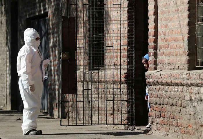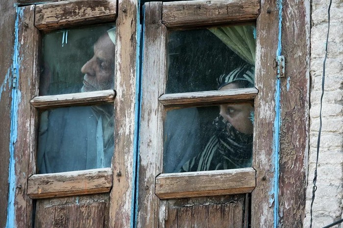 Cư dân ở Ấn Độ nhìn ra cửa sổ của một ngôi nhà.