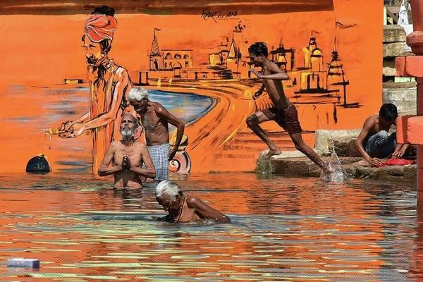 Người dân thực hiện nghi thức trong Lễ hội Akshaya Tritiya ở Ấn Độ.