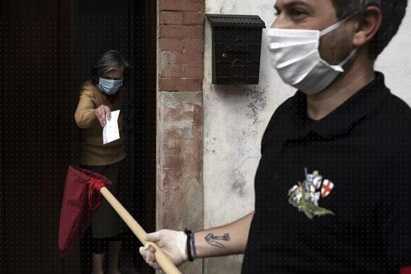 Người phụ nữ ở Italy thực hiện nghiêm túc chế độ giãn cách xã hội trong bối cảnh đại dịch Covid-19 đang diễn biến phức tạp.