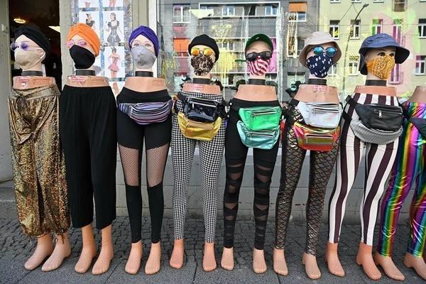 Các loại khẩu trang đi kèm với trang phục được bày bán tại một cửa hàng ở Berlin.