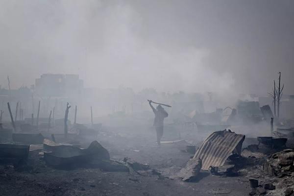 Hậu quả của một vụ hỏa hoạn tại một trại tị nạn ở thủ đô Bamako của Mali.