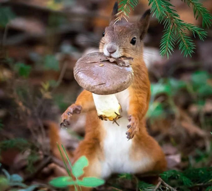 Một chú sóc ngơ ngác dưới ống kính nhiếp ảnh gia.