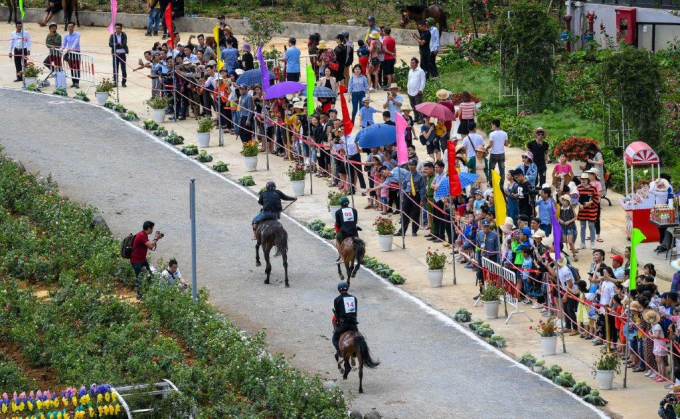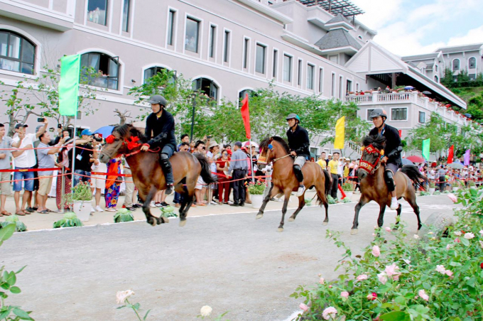 Ba ngày “Vó ngựa trên mây” được tổ chức lần đầu tiên tại Sun World Fansipan Legend, không khí lúc nào cũng ngập tràn sự phấn khích.Không chỉ các nài ngựa và những chú ngựa Tây Bắc hào hứng khi được thi đấu, tranh tài trên một cung đường đua vô cùng lãng mạn được trang trí đầy hoa tươi…… mà khán giả, dù là người lớn hay trẻ nhỏ, nam thanh hay nữ tú… cũng vô cùng hứng khởi với giải đua. Đứng dọc theo đường đua, liên tục hò hét vỗ tay cổ vũ không ngừng, họ đã tiếp thêm lửa thi đấu và khí thế cho các “nài ngựa” tranh tài.Quy tụ tại giải đua “Vó ngựa trên mây” lần thứ nhất là 16 “tuấn mã” và các “kỵ sỹ” có thành tích tốt nhất từ giải Bắc Hà vừa qua. Tranh tài trên đường đua có tổng chiều dài 1400m, mỗi ngày, có 3 giải nhất – nhì – ba được trao cho các chú ngựa thắng cuộc.Nhưng có lẽ giải thưởng không phải là động lực lớn để các “nài ngựa” –những nông dân người Mông, Tày, Nùng… và “ngựa đua” là những chú ngựa thồ hàng ngày vẫn cùng họ chở hàng, kéo cày làm nương... hăng say trên đường đua. Những tiếng reo vui phấn khích, tiếng hò hét không ngừng “số 3 cố lên, số 8 nhất rồi” và những khuôn mặt vô cùng hào hứng của khán giả đã như liều doping khiến giải đua mỗi ngày lại thêm sôi động.
