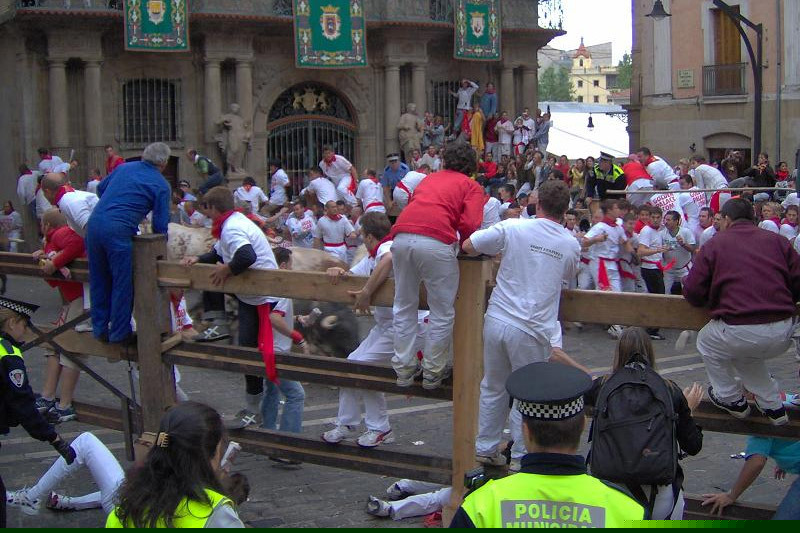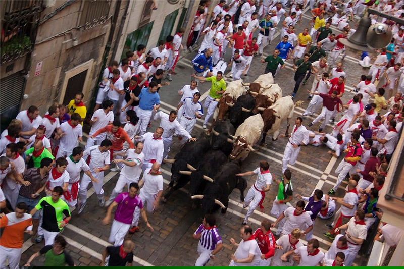 Tham gia cuộc rượt đuổi giữa người và bò cùng với người dân bản xứ là khách du lịch đến từ khắp năm châu. Hai bên đường có rào gỗ chắn và trên các bậu cửa sổ, ban công là hàng trăm nghìn người dân địa phương và khách du lịch đứng xem, cổ vũ.