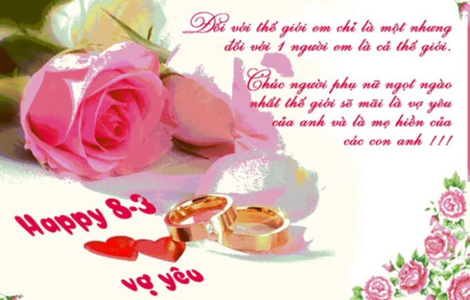 Cảm ơn em vì em đã trở thành người vợ tuyệt vời. Chúc em ngày 8/3 hạnh phúc, vui vẻ và thành công trong mọi công việc.