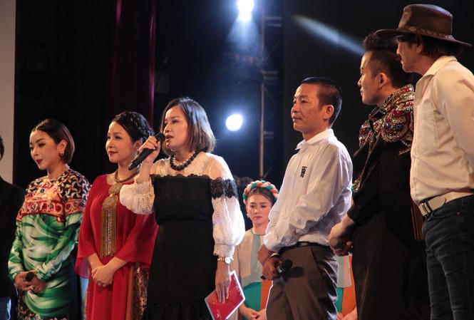 Đại diện gia đình và các nghệ sĩ tham gia đêm nhạc Phó Đức Phương Khúc hát phiêu ly (Nhà hát Lớn Hà Nội, 10/7) nói lời tri ân khán giả. Ảnh: N.M.Hà