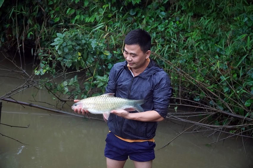 Anh Phạm Đức Huỳnh (ở thôn Trung, xã Xuân Giang, huyện Quang Bình, tỉnh Hà Giang) cho biết, ao cá của gia đình anh có đàn cá bỗng có trọng lượng khoảng 3kg, song thực tế gia đình anh đã nuôi hơn 8 năm nay.