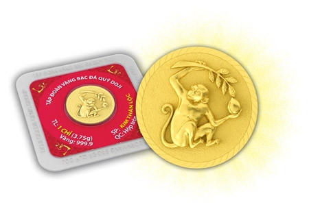 Đây là sản phẩm của Tập đoàn vàng bạc đá quý Doji, được thiết kế tinh xảo, sử dụng chất liệu vàng 999.9 tinh khiết tuyệt đối, ấn tượng với hình ảnh chú khỉ một tay cầm trái đào tiên, một tay cầm cành lộc trong tâm thế vui tươi, hào hứng.