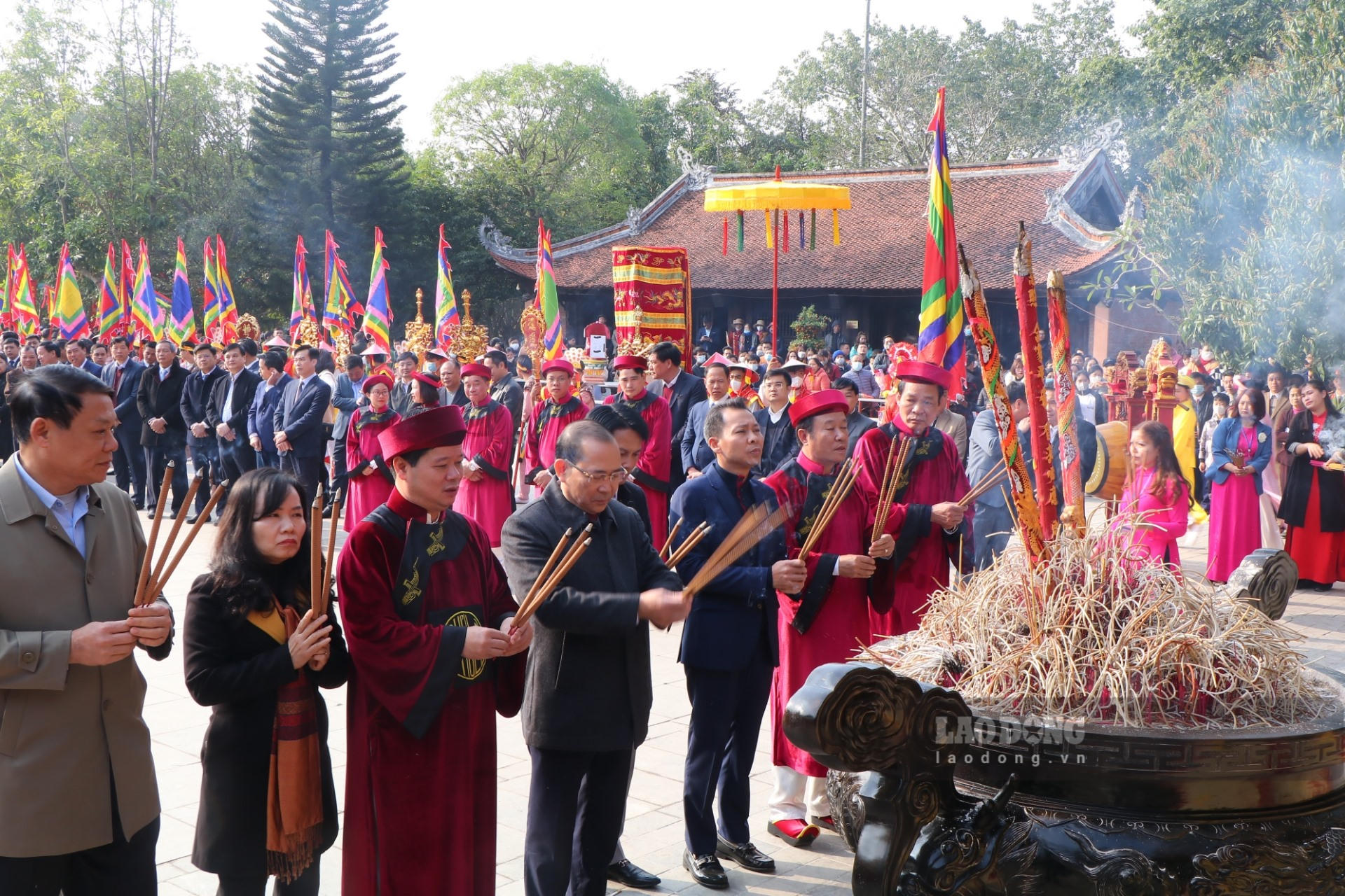 Lãnh đạo tỉnh Phú Thọ và lãnh đạo UBND huyện Hạ Hòa cùng các đại biểu dâng hương tại đền Mẫu Âu Cơ xuân Quý Mão 2023.