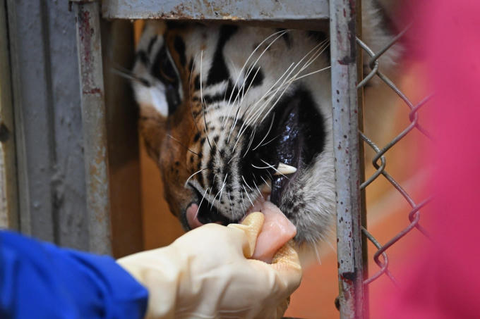 Hổ được bác sĩ thú y theo dõi sức khỏe hàng ngày, bổ sung thuốc và vitamin trong mỗi khẩu phần ăn.