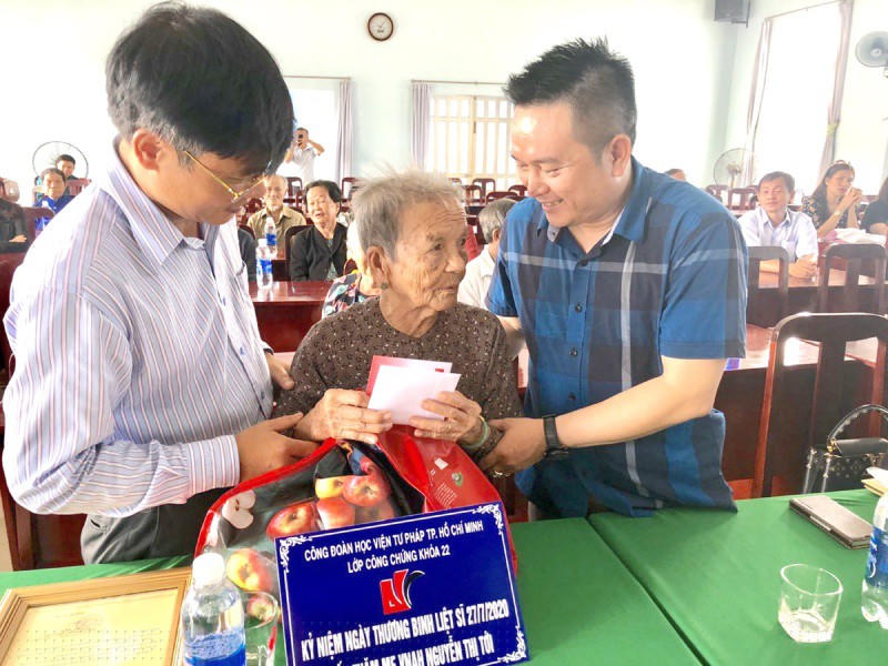 Mới đây, Kỷ niệm 73 năm Ngày thương binh, liệt sỹ (27/7/1947- 27/7/2020), ngày 18/7, Học viện tư pháp cơ sở TP HCM đã tổ chức chuyến đi Về nguồn, thăm và tặng quà Mẹ Việt Nam Anh hùng (VNAH) Nguyễn Thị Tới cùng các thương binh, bệnh binh và gia đình người có công tại tỉnh Đồng Nai. Trong chuyến thăm đầy tình nghĩa, Học viện tư pháp cơ sở TP HCM và các học viên đã tặng 30 phần quà cho Mẹ Việt Nam Anh hùng và gia đình chính sách ở xã Phú Túc.