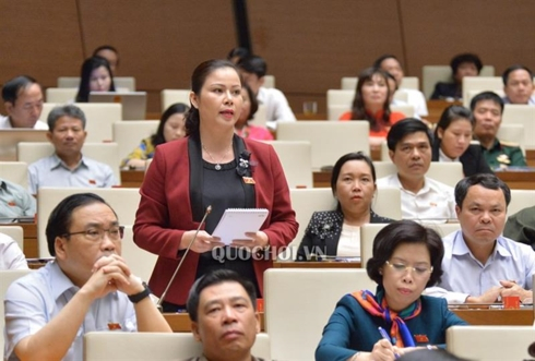 | Đại biểu Bạch Thị Hương Thủy, Đoàn đại biểu Quốc hội tỉnh Hòa Bình chất vấn các thành viên Chính phủ tại Kỳ họp thứ 6. |
