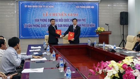 | Phó Chủ nhiệm Văn phòng Quốc hội Phạm Đình Toản bàn giao Văn phòng Đoàn ĐBQH Tp. Đà Nẵng về UBND Tp. Đà Nẵng. |