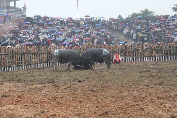 Hôm nay 23/2, ngay từ những màn đấu loại sáng đã thấy sự đối đầu kịch tính, pha ngoắc sừng, húc mạnh, rượt đuổi của những con trâu dày dạn chiến thuật đã làm cho lễ hội thêm nhộn nhịp, ai cũng ra sức hô hào cổ vũ cho những “ông cầu” của mình.