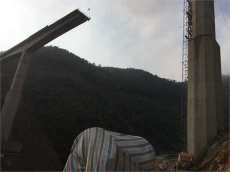 UBND tỉnh Thanh Hóa có thông báo kết luận kết quả điều tra nguyên nhân vụ sập hệ đà giáo tại công trình cầu Suối Quanh, huyện Quan Hóa làm 4 người tử vong. Theo đó, nguyên nhân dẫn đến sự cố sập hệ đà giáo trong quá trình thử tải để thi công công trình là do quá trình chất tải lệch tâm, kết hợp với hiện tượng trượt chân hệ đà giáo trên bệ trụ tạm (hệ quả của quá trình chất tải lệch tâm). Ảnh do độc giả cung cấp.