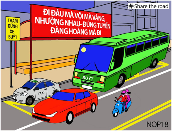 Rất nhiều tài xế đã in câu khẩu hiệu: “Một người sai làn, cả ngàn người khổ” và dán vào kính hậu của xe mình. Câu khẩu hiệu đó rất hay, nói lên được tương đối đầy đủ việc đi đường mà cố ý chen lấn sai luật, hoặc không chịu nhường nhau thì hậu quả sẽ nghiêm trọng như thế nào.