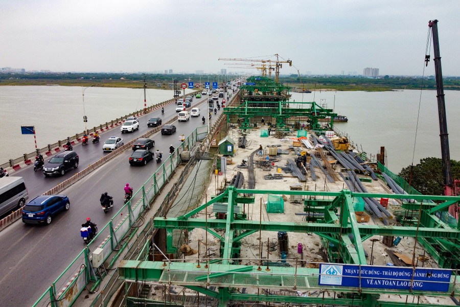 Công trường cầu Vĩnh Tuy 2 (TP Hà Nội) những ngày cuối năm. Ảnh: Quang Phong