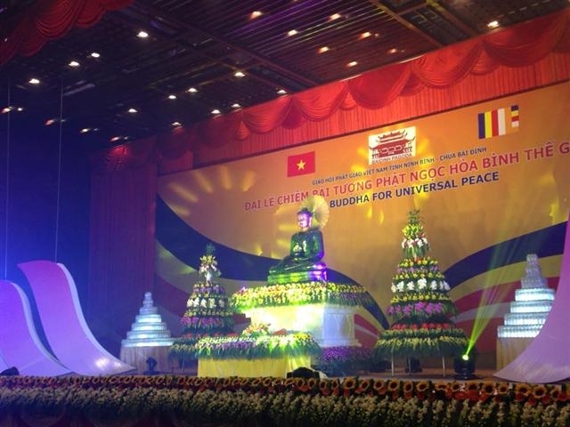 Trong không gian thanh tịnh, Hòa thượng Thích Thanh Quang - Phó ban kiêm Chánh Thư ký Ban trị sự Giáo hội Phật giáo Việt Nam tỉnh Ninh Bình cho biết: “Đây là lần thứ 2 tượng Phật ngọc Hòa bình về Việt Nam. Phật ngọc về chùa Bái Đính sẽ được triển lãm trưng bày tại Trung tâm hội nghị quốc tế của chùa. Dự kiến trong thời gian tượng Phật ngọc Hòa bình ở chùa Bái Đính sẽ có hàng triệu lượt người đến đây để chiêm bái”.