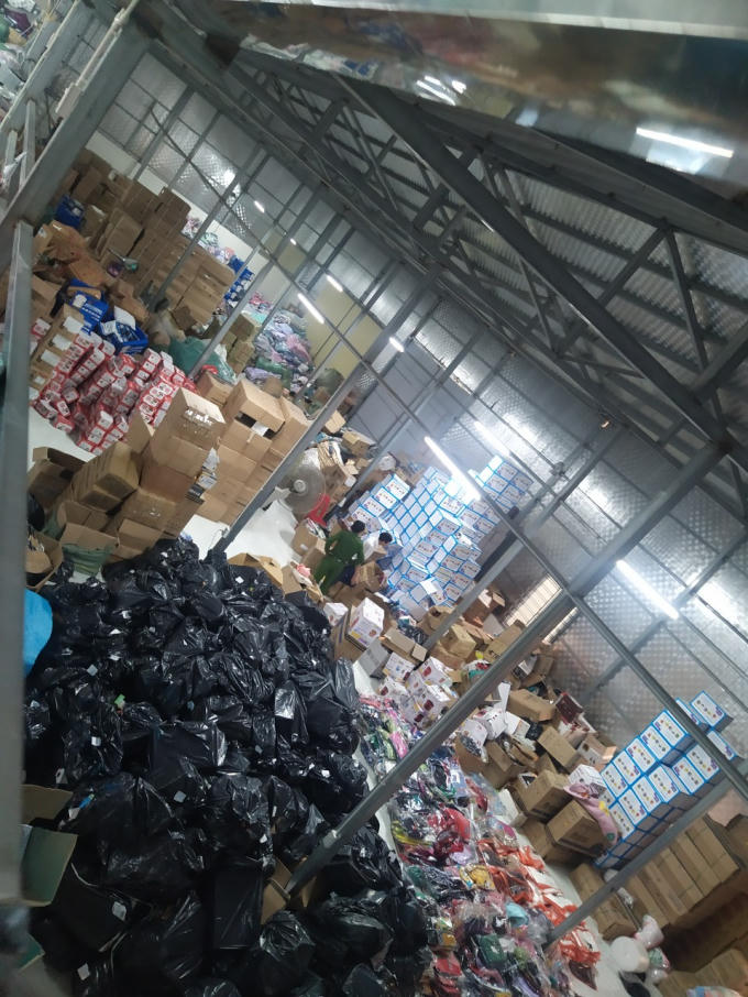 Kho hàng chứa một lượng lớn các sản phẩm gia dụng, dân dụng, thực phẩm, thực phẩm chức năng, quần áo, đồng hồ... có dấu hiệu giả mạo nhãn hiệu, nhập lậu, vi phạm về nhãn hàng hóa, an toàn thực phẩm.
