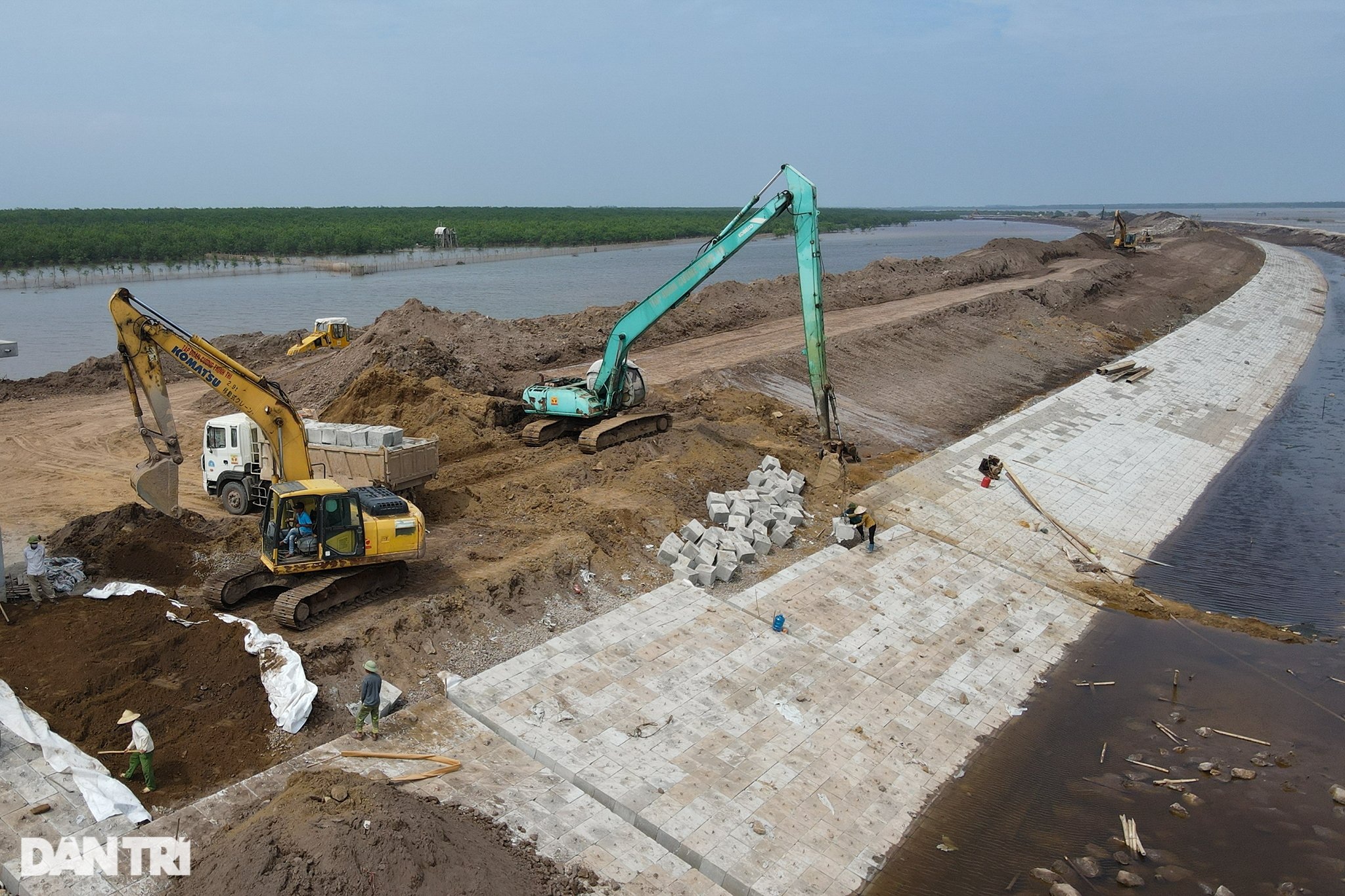 Dự án xây dựng đê Bình Minh 4 ở Ninh Bình dài 17km, như một bức tường "khổng lồ" chắn sóng, gió bão cấp 12, giúp lấn thêm hàng trăm ha về phía biển để phát triển kinh tế.