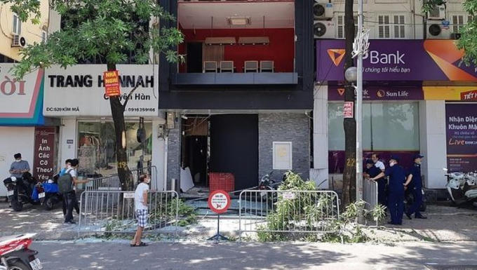 Một vụ nổ lớn tại số nhà 531 đường Kim Mã, kính văng từ ngôi nhà 4 tầng ra đường, gãy cành cây phía trước rơi trúng xe ô tô đang đi đường, lái xe may mắn thoát chết.