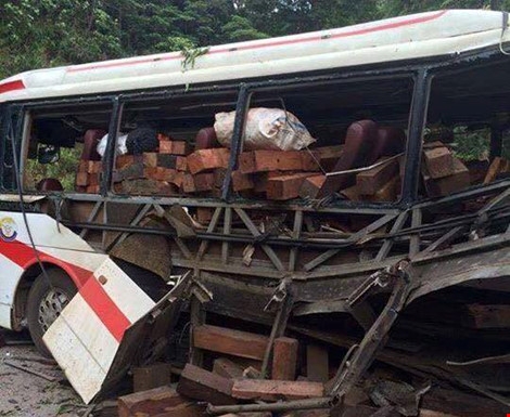 | Hiện trường cho thấy chiếc xe bị hư hỏng nặng và trên xe chở nhiều gỗ. Ảnh Đắc Lam - Plo.vn |