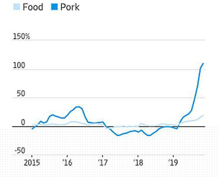 Giá thịt heo ở Trung Quốc tăng đột biến hơn các nước vì thịt heo chiếm chi tiêu thực phẩm lớn nhất trong hộ gia đình nước này. Lạm phát thực phẩm quá nóng đe dọa mặt bằng giá hàng hóa nói chung tăng theo. Điều này lại kéo theo các chi phí khác cũng leo thang, như lương bổng hay tiền thuê nhà.