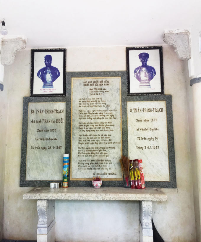 Nhà mồ với 6 ngôi mộ. Ông bà Trần Trinh Trạch ở giữa, bên trái là mộ cậu Ba Huy.