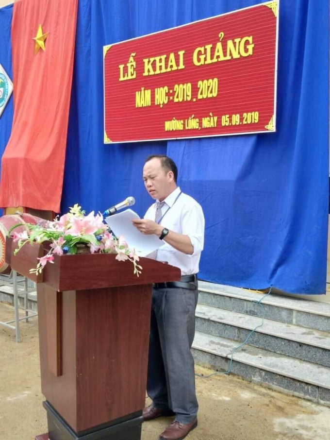 Thầy Lầu Bá Tu, Hiệu trưởng trường Tiểu học Mường Lống 2 phát biểu khi nhận quà từ Quỹ trao tặng yêu thương