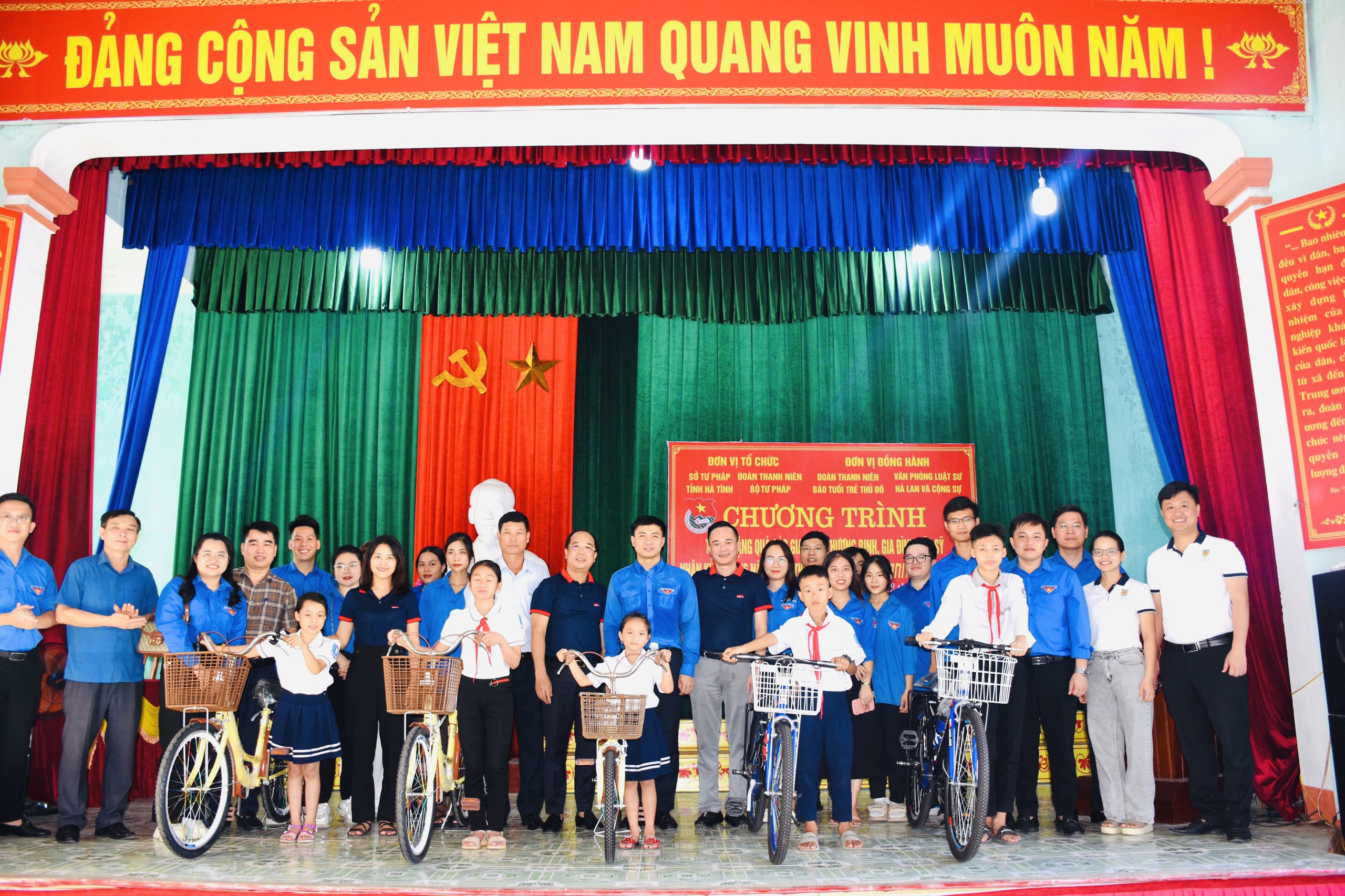 Đoàn trao tặng Tủ sách "Thanh niên với pháp luật" cho UBND xã Kỳ Thư và tặng xe đạp cho các cháu học sinh xã Kỳ Thư, huyện Kỳ Anh.