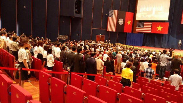 Phát biểu khai mạc sự kiện Việt - Mỹ, Chủ tịch Liên hiệp các tổ chức hữu nghị Việt Nam (VUFO) Vũ Xuân Hồng nhấn mạnh cuộc gặp gỡ này là sự kiện quan trọng trong chuyến thăm Việt Nam của Tổng thống Mỹ.
