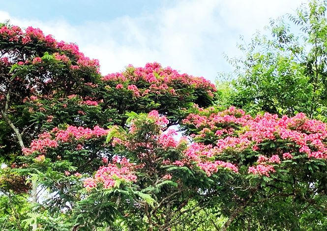 Hiện phượng hồng đang nở hoa sum suê trong công viên đầu đường Nguyễn Du, nơi tiếp giáp với đường Quang Trung. Loài phượng với sắc hồng trang nhã này làm phong phú thêm bộ “sưu tập” hoa phượng độc đáo trên cao nguyên.