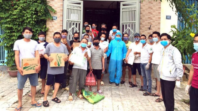 Công nhân tại các lán trại được các tổ chức từ thiện phát cơm hỗ trợ.